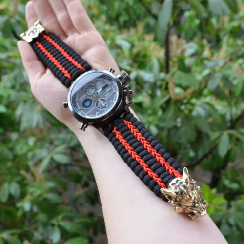 Bracelet + Watch Survival Paracord Jewelry Brutal "Wolf". Сustom-sized