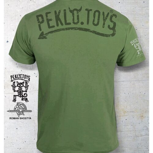 Man's T-shirt Peklo.HELL Toys.Angry Boy Trident Khaki. War in Ukraine Patriotic