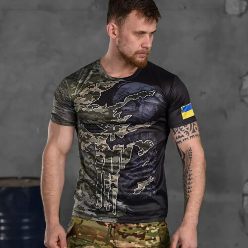 Man's T-shirt Predator Soldier Biker Brutal. War in Ukraine Patriotic