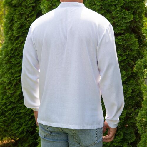 Men’s White Linen Shirt Flanker Traditional Ukrainian Vyshyvanka Embroidery
