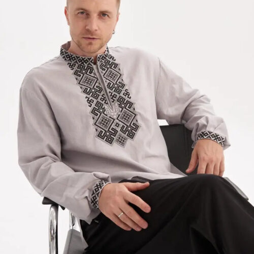 Men’s Cotton+Linen Shirt Traditional Ukrainian Vyshyvanka Embroidery "Mstislav"