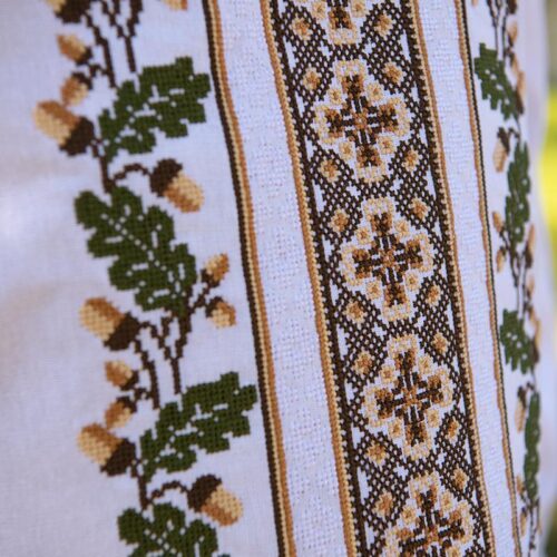 Men’s white Linen Shirt "Live Oak" Traditional Ukrainian Vyshyvanka Embroidery
