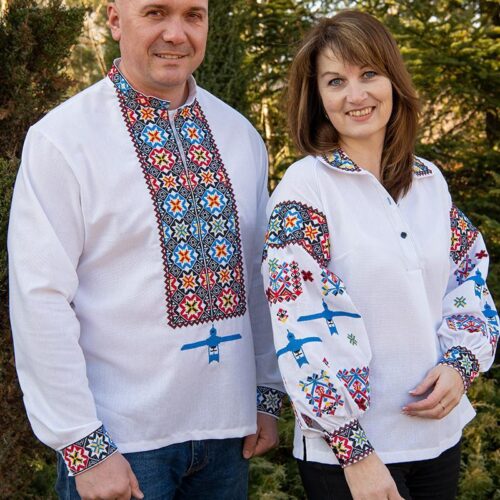 Men’s white Linen Shirt "Birds" Traditional Ukrainian Vyshyvanka Embroidery