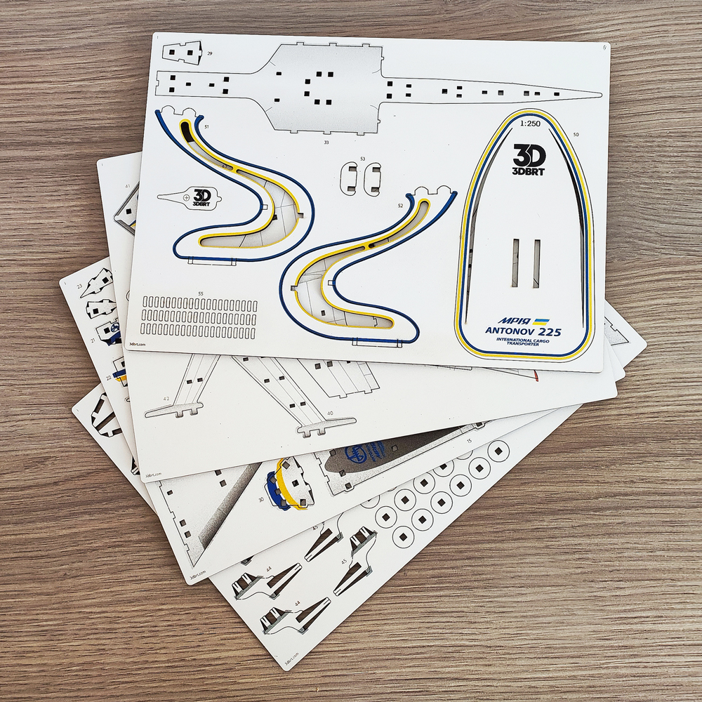 3D-constructor “Mriya An-225 plane” – a patriotic three-dimensional puzzle on a scale of 1:250. The original Mriya An-225 plane is known for its size and carrying capacity. And although this giant was destroyed during the Russian invasion in 2022, Mriya still continues to live in the hearts of Ukrainians.