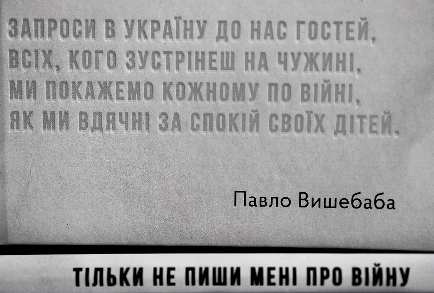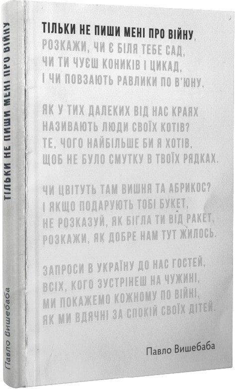 The second edition of Pavel Vyshebaba’s debut book “Just don’t write to me about the war”. According to the poet and editor of this collection, Ivan Malkovich, few poets burst into literature so quickly. With his poems, Pavlo Vyshebaba has drawn unprecedented attention to Ukrainian poetry: the author’s recitation receives millions of views on social networks, the publication of new texts is reported in the mass media, Vyshebaba’s poems are read in prime time on central TV channels, they are set to music and voiced at pro-Ukrainian rallies all over the country. the world in different languages. For many, these texts became an online chronicle of the feelings of Ukrainians, and Vyshebaba became a poetic voice of the times.