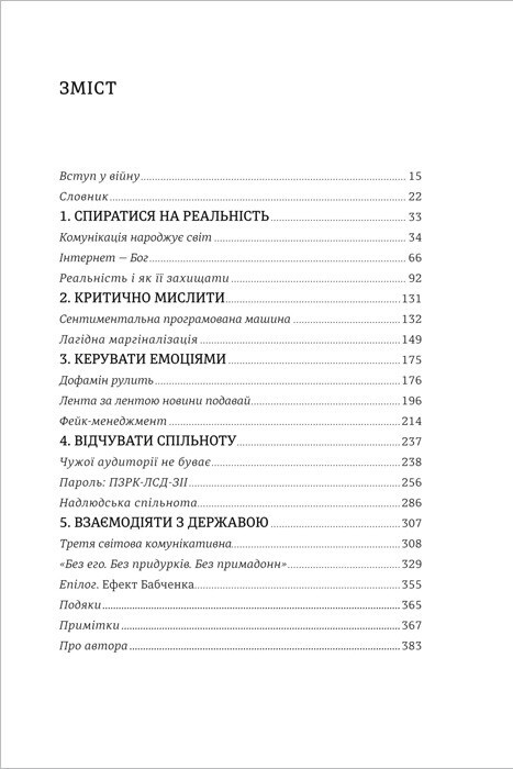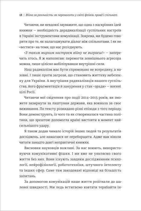 Focusing on examples from Ukraine, other countries and the experience of companies, the author analyzed how the war for reality takes place and singled out five rules that will help to win it. The main impetus for writing the book was the annexation of Crimea and the beginning of armed aggression on the part of russia, because lies and manipulations that are spread with the help of the Internet have become an integral part of this war. And Ukrainian society was not ready to protect its information space.
