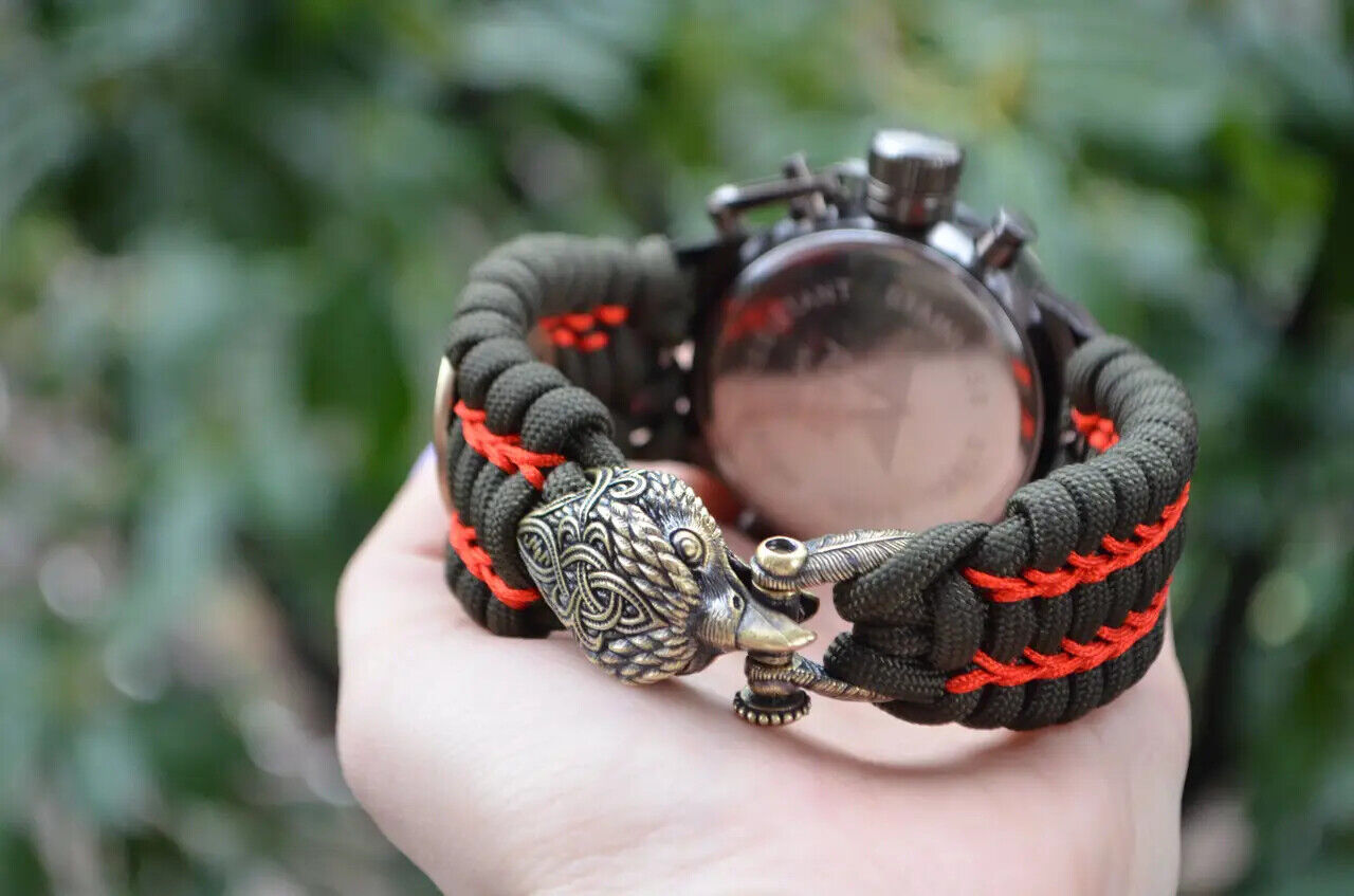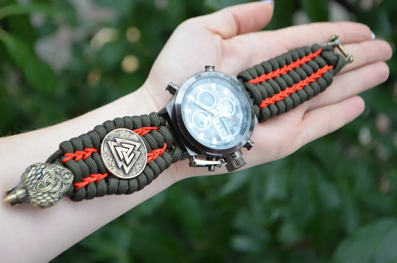 Bracelet + Watch Survival Paracord Jewelry Brutal "Valknut". Сustom-sized