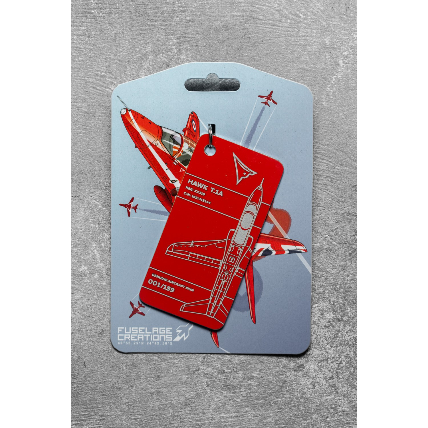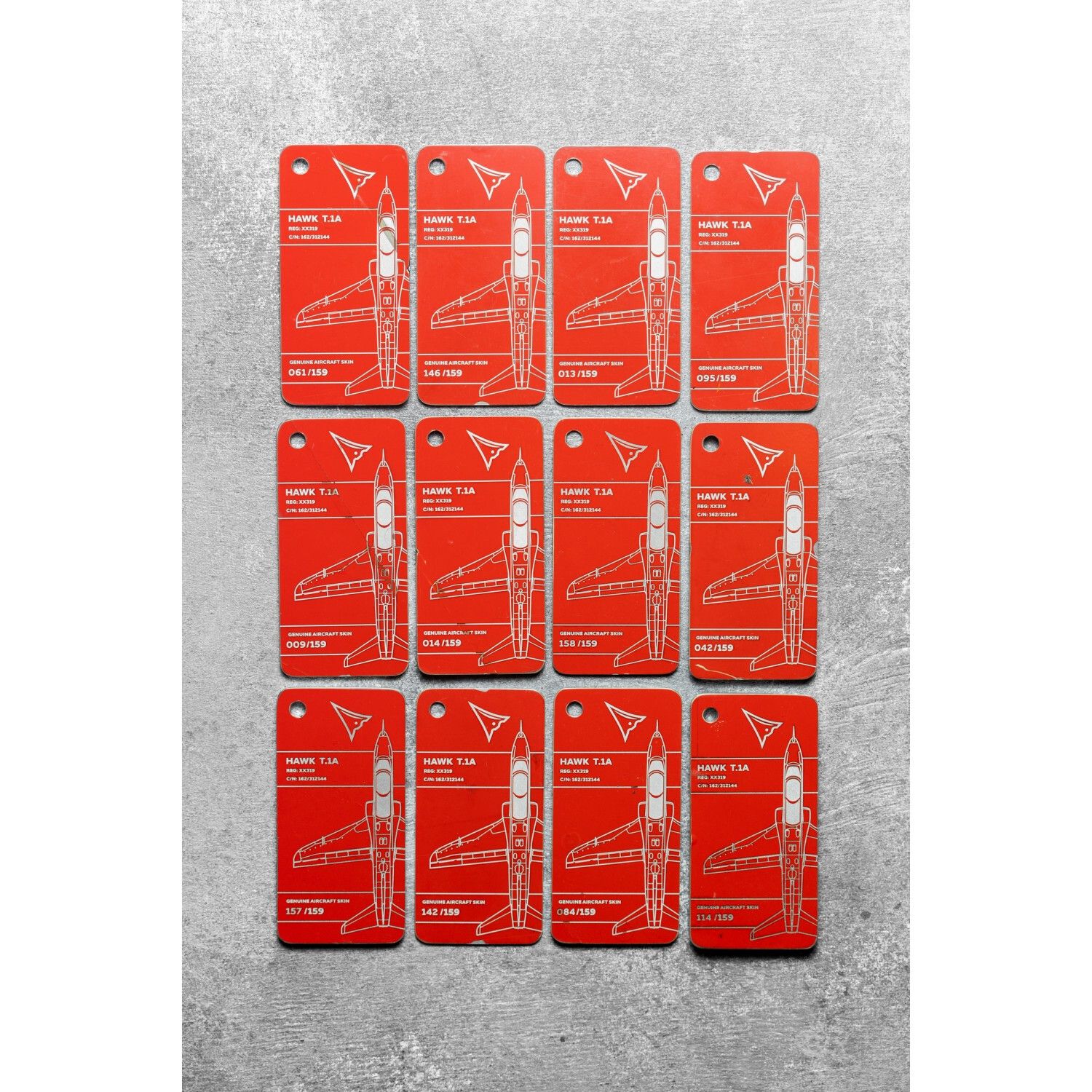Tags from the Hawk T.1A of the world-famous Red Arrows flying team of the Royal British Air Force. The Hawk T1A is a modified Hawk T1 designed to replace the Hawker Hunter in the RAF’s tactical weapons units.