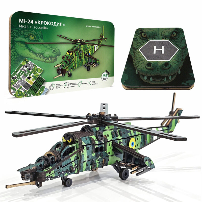 Dive into the world of engineering, military equipment and creativity with the unique wooden 3D constructor “Mi-24 Helicopter Crocodile”! This legendary combat helicopter, nicknamed “Crocodile”, has won respect due to its power, speed and impressive appearance. Now you can create your own miniature copy of this helicopter, assembling it from parts with your own hands.
