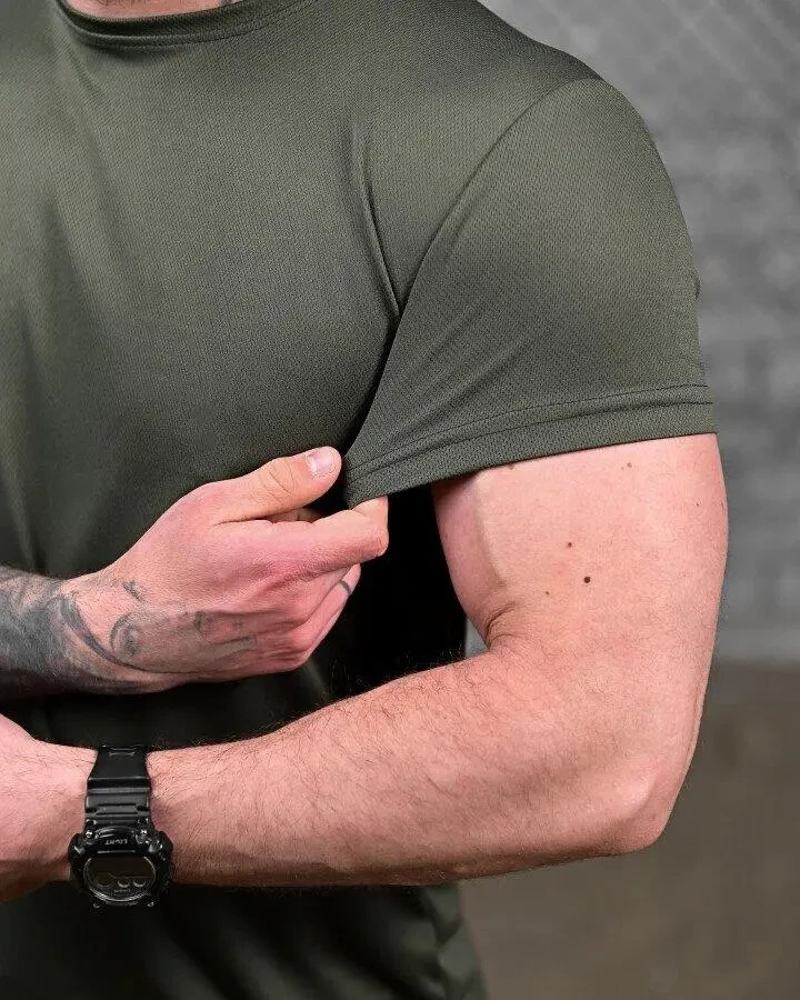 This T-shirt is crafted from Coolmax fabric, a performance material designed to enhance comfort during wear.