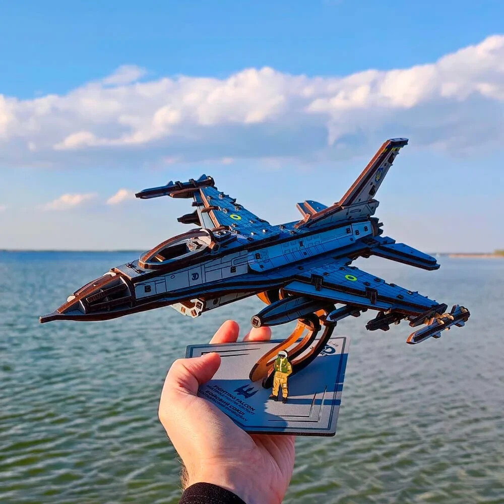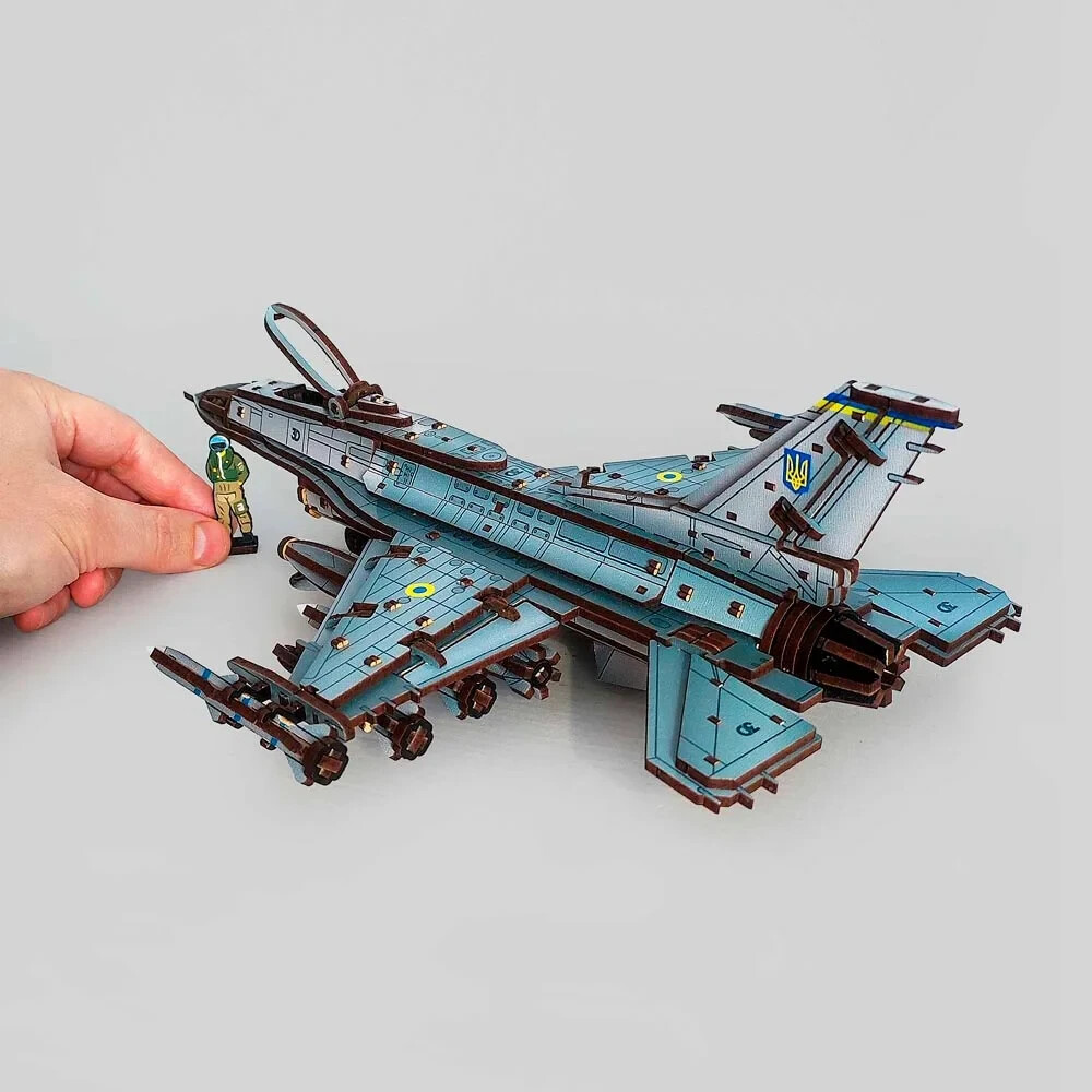 Mechanical Wooden 3D Puzzle Model Kit "F-16 Fighting Falcon" War in Ukraine