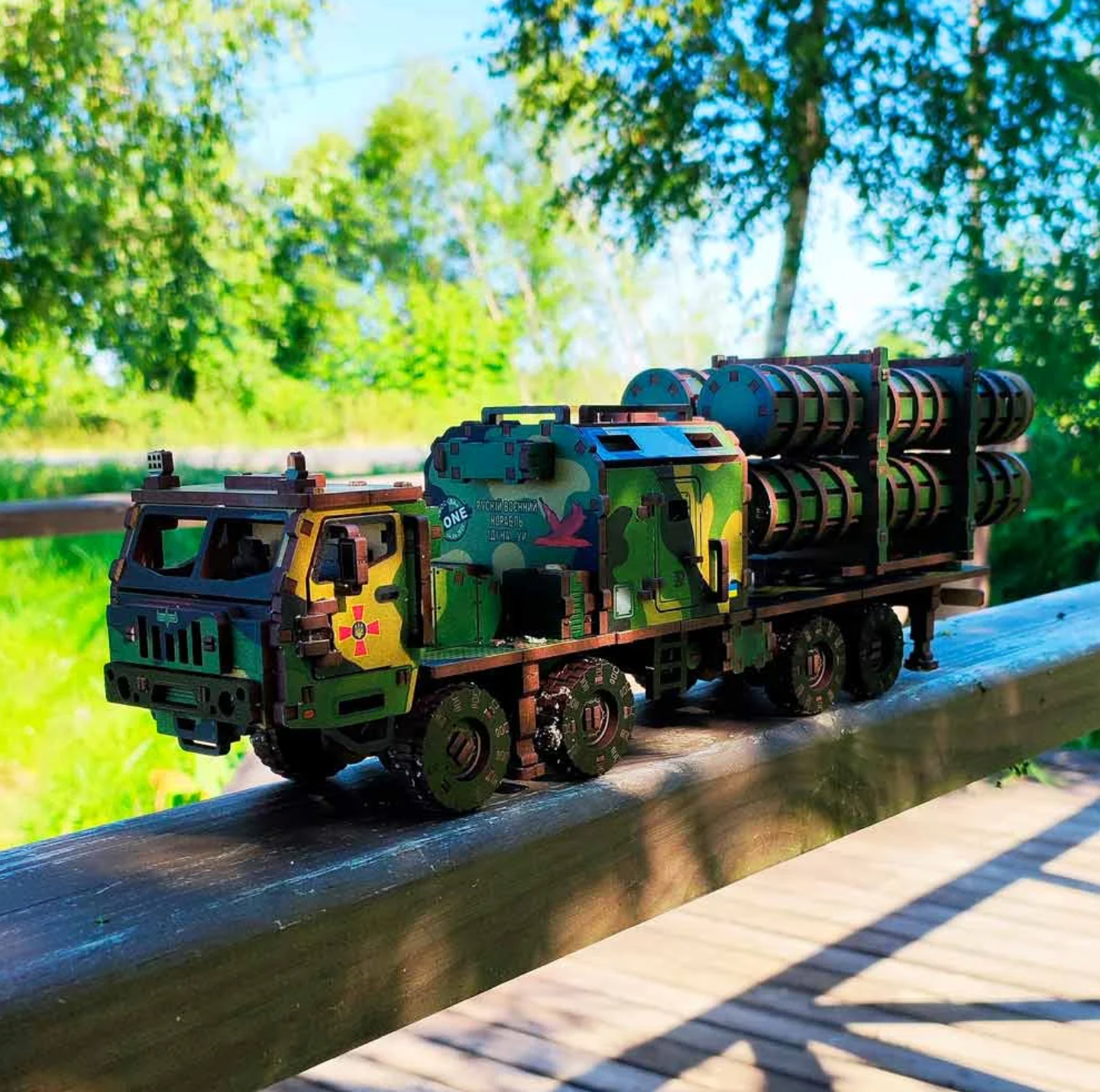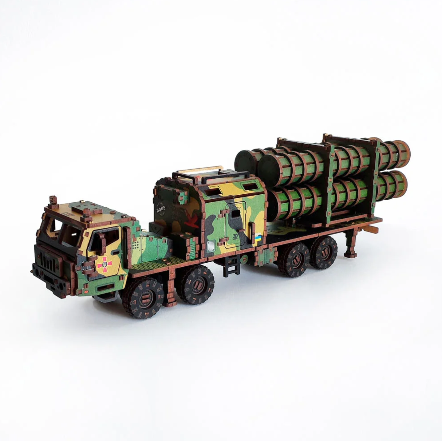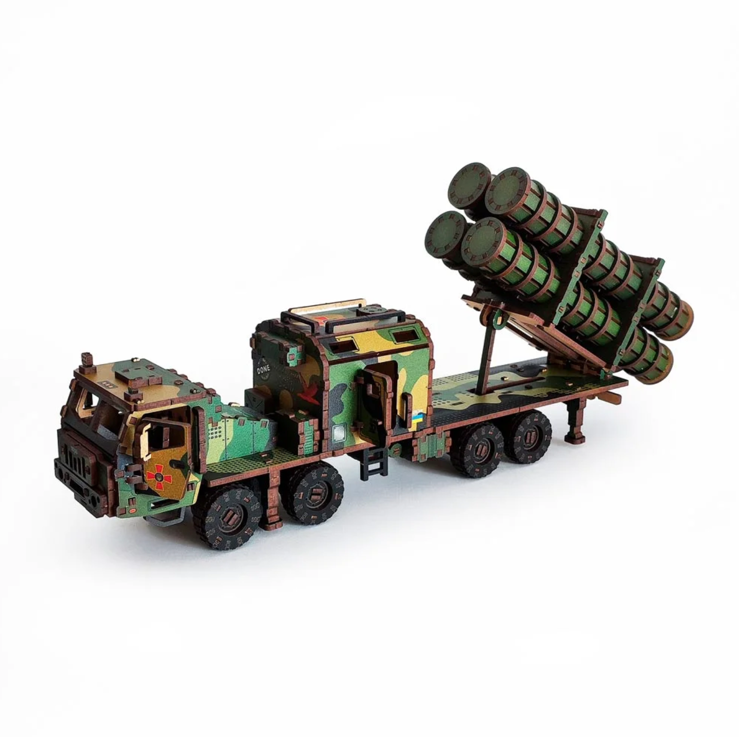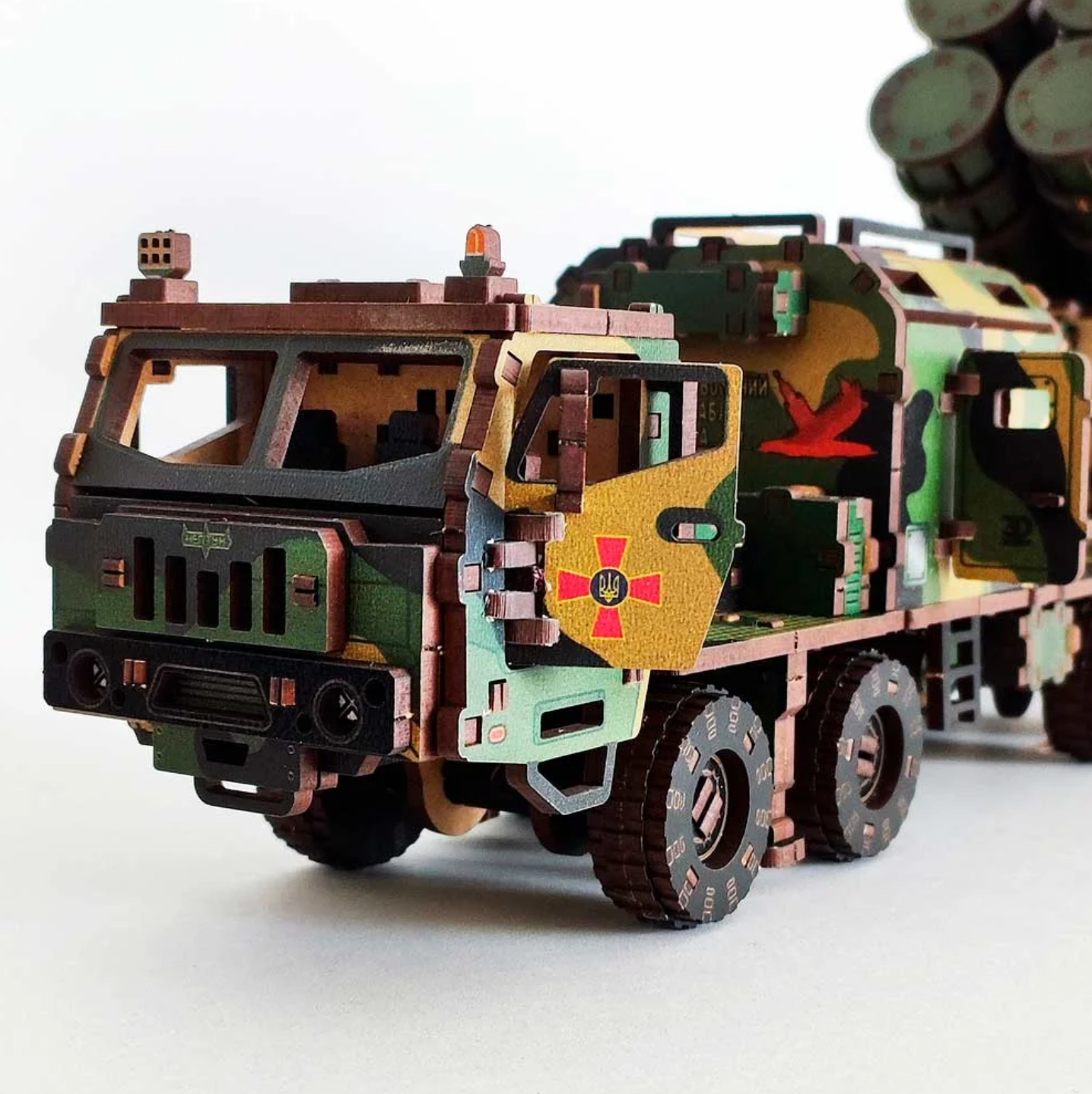 The 3D puzzle RK Neptune made of wood is a mechanical constructor for self-assembly. Made in camouflage color, which was on the first research complex at the KRAZ base. Toy with 435 parts for adults. The world-famous missile complex that destroyed the flagship of the Russian Black Sea Fleet, the cruiser “Moskva”. Short, dynamic “RK Neptune” in three colors.