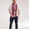 This trendy embroidered shirt is designed in the “classic” style, which is highly favored by young people nowadays. The fabric used is pure linen and comes in a white.