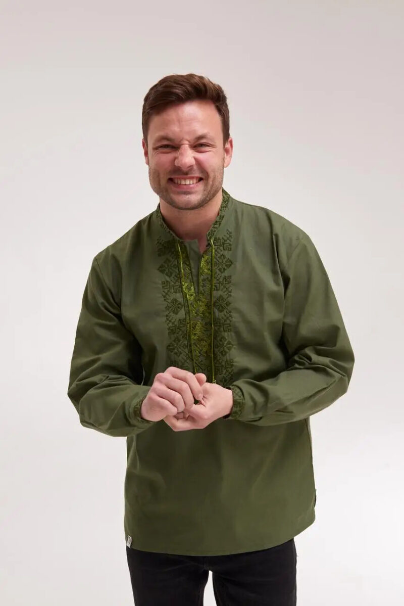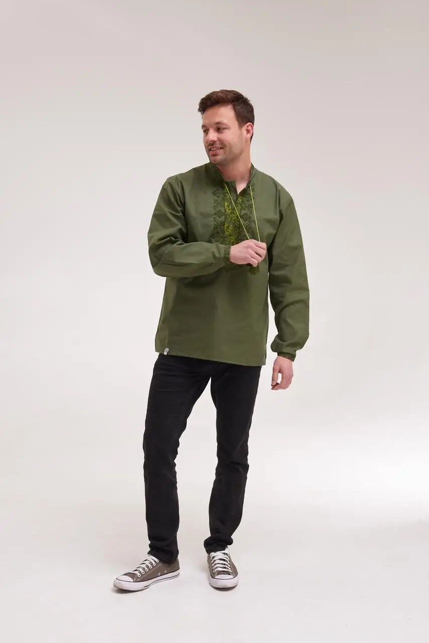 Men’s Cotton Shirt Traditional Ukrainian Vyshyvanka Embroidery Peremoha