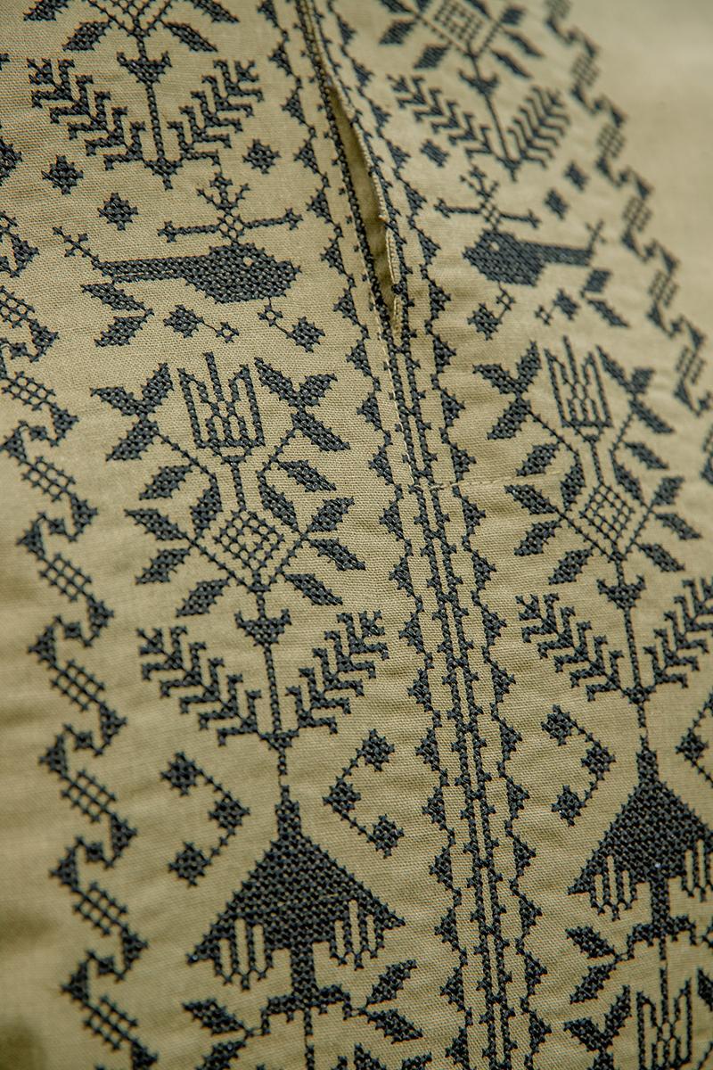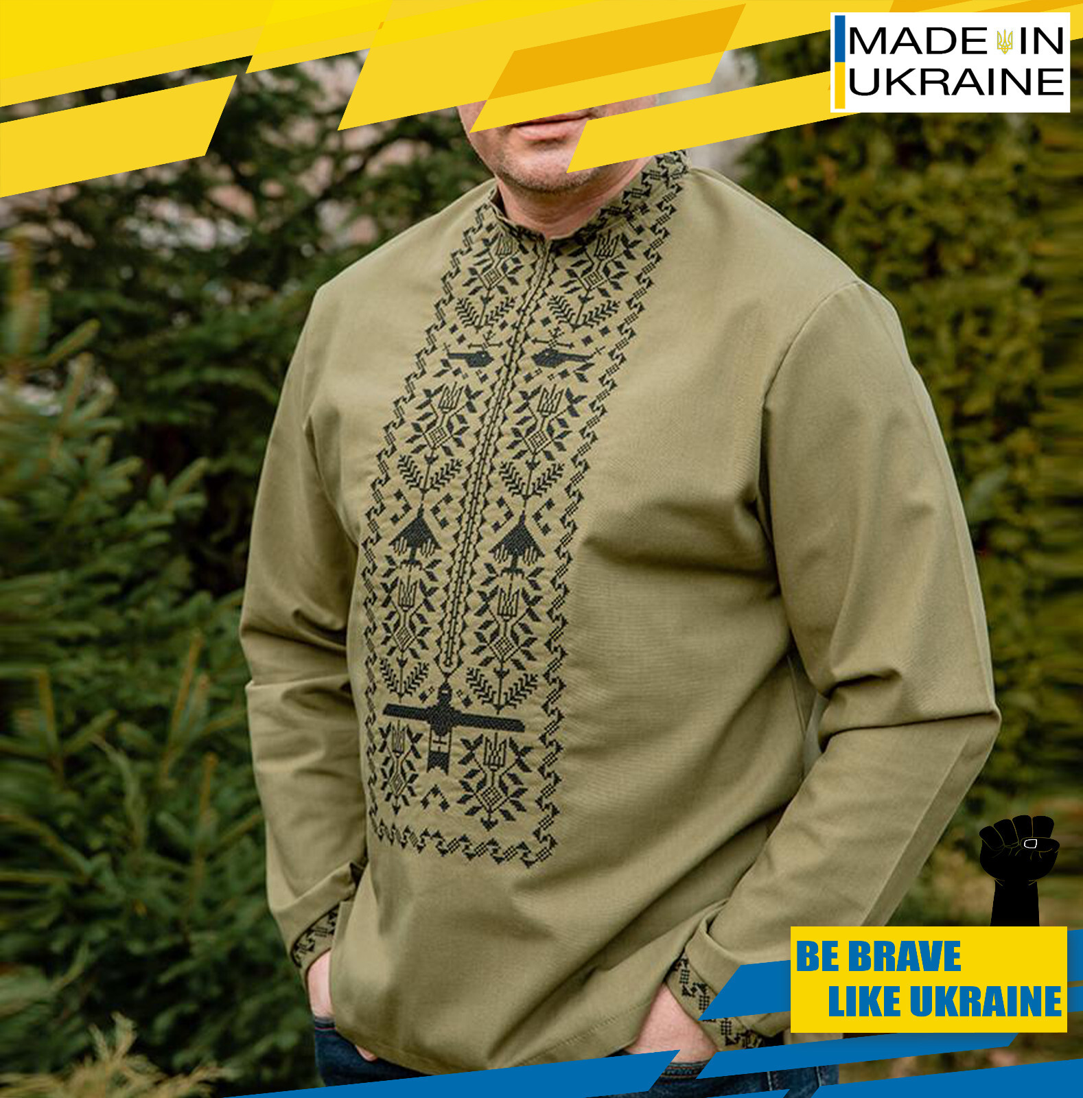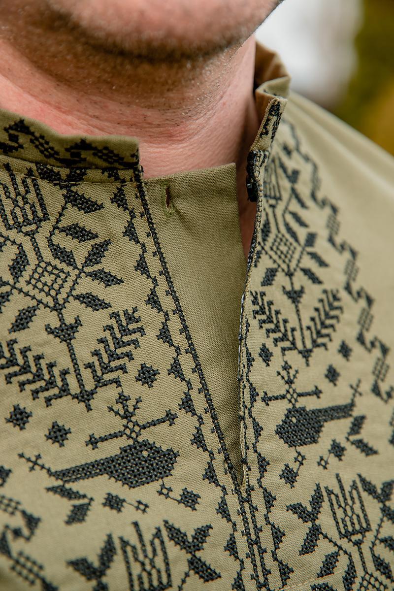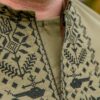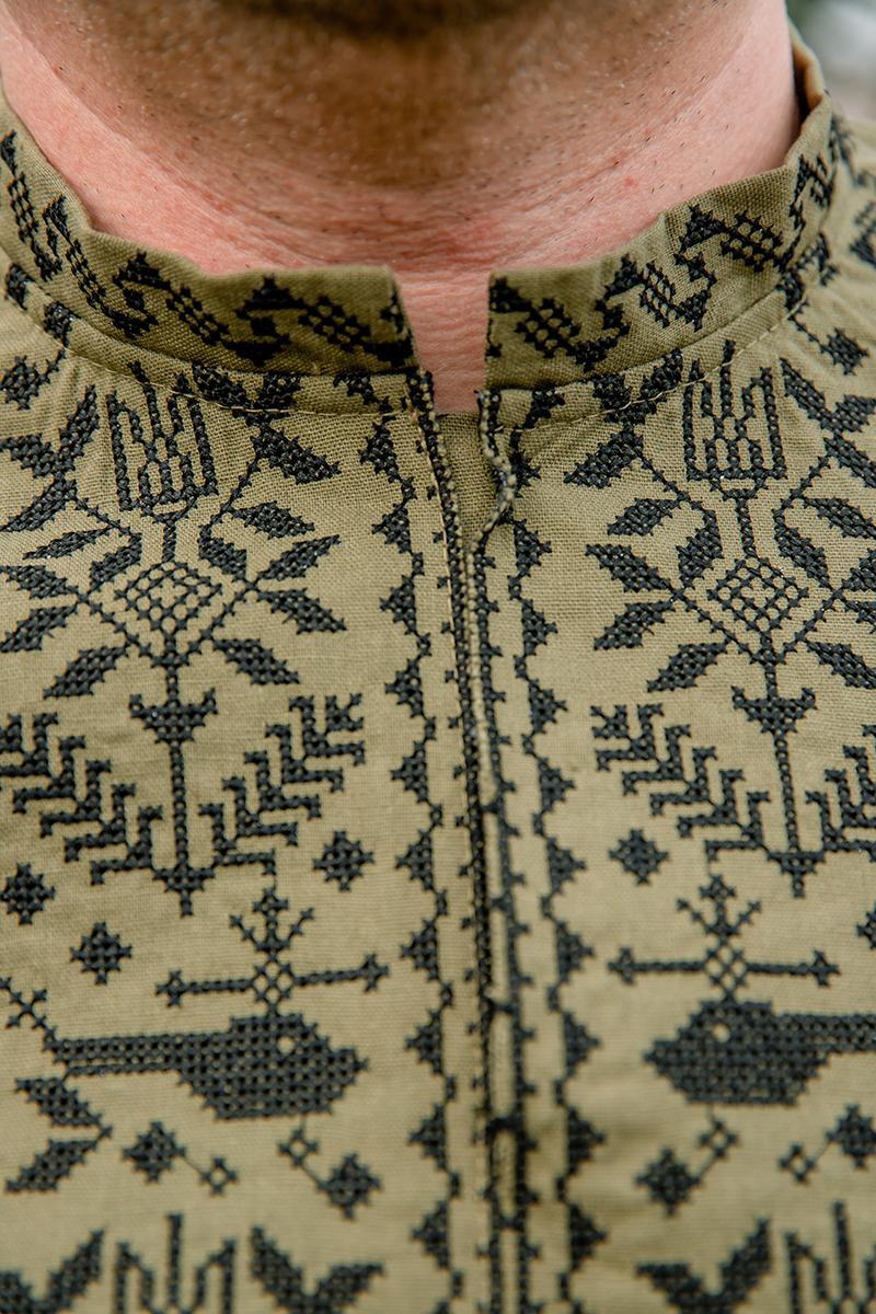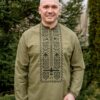 Men’s Olive Khaki Linen Shirt Traditional Ukrainian Vyshyvanka Embroidery