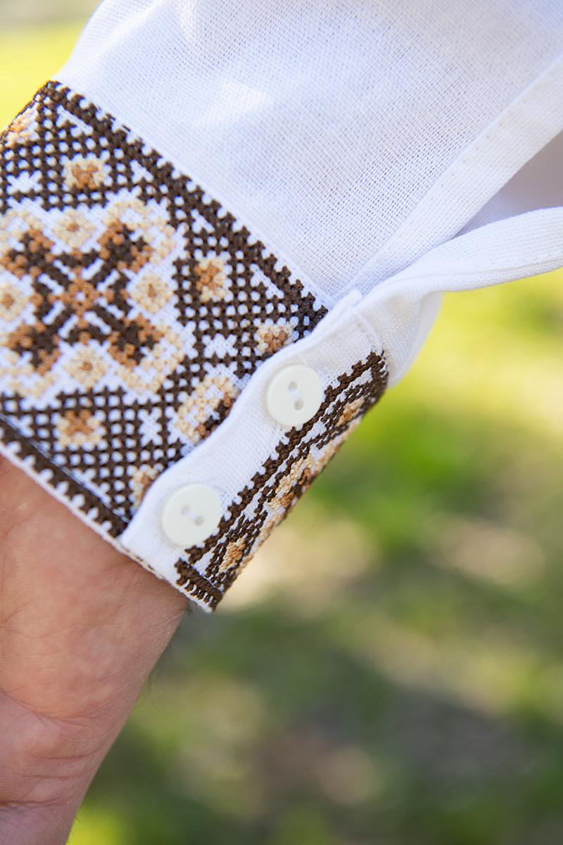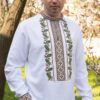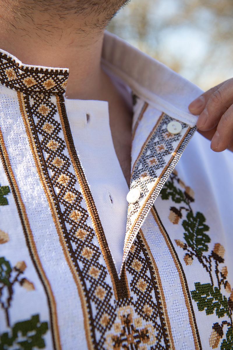 Men’s white Linen Shirt "Live Oak" Traditional Ukrainian Vyshyvanka Embroidery