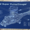 poster with a drawing of the AS 332 Super Puma aircraft, the layout