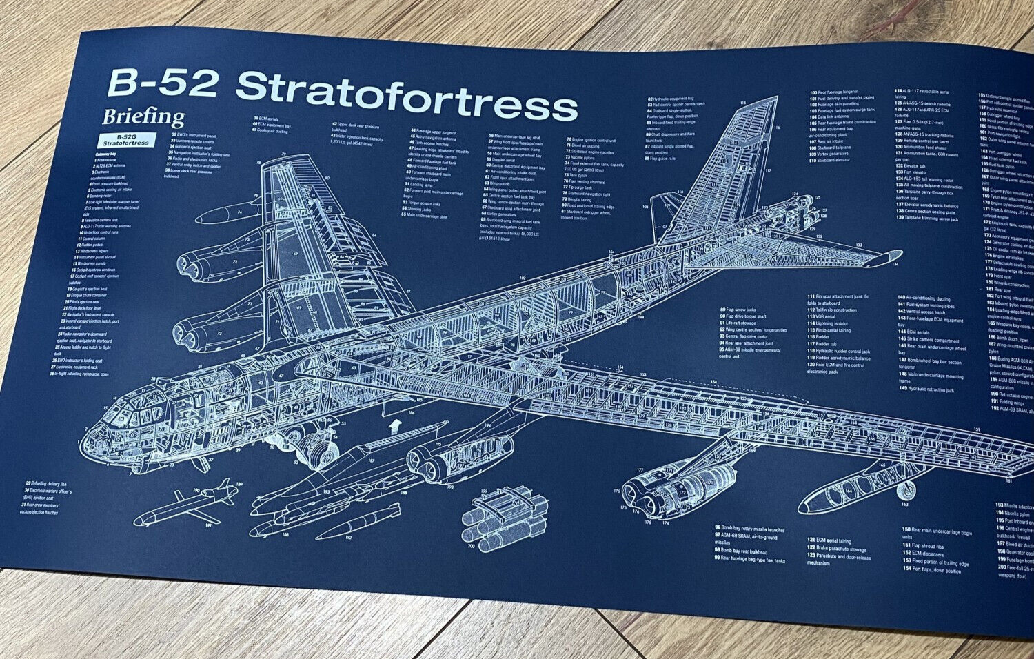 poster with a drawing of the B-52 Stratofortress aircraft, the dark