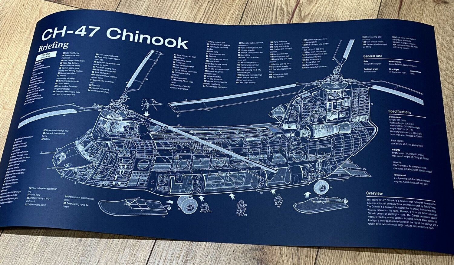 Poster CH-47 Chinook Blueprint. Thick blue paper