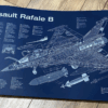 A poster with a drawing of the Dassault Rafale B aircraft,