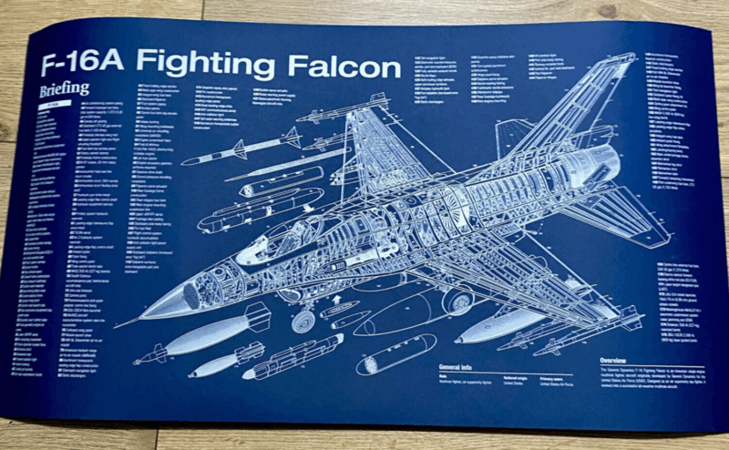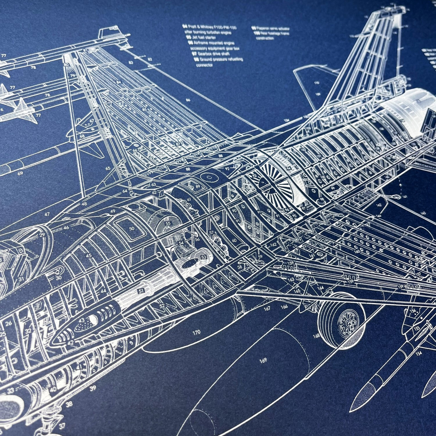 Poster F-16A Fighting Falcon Blueprint. Thick blue paper