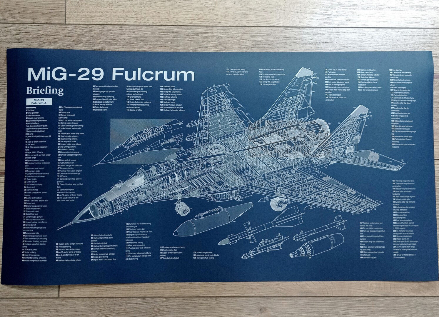 themselves with our MiG-29 Fulcrum poster. The dark blue poster shows