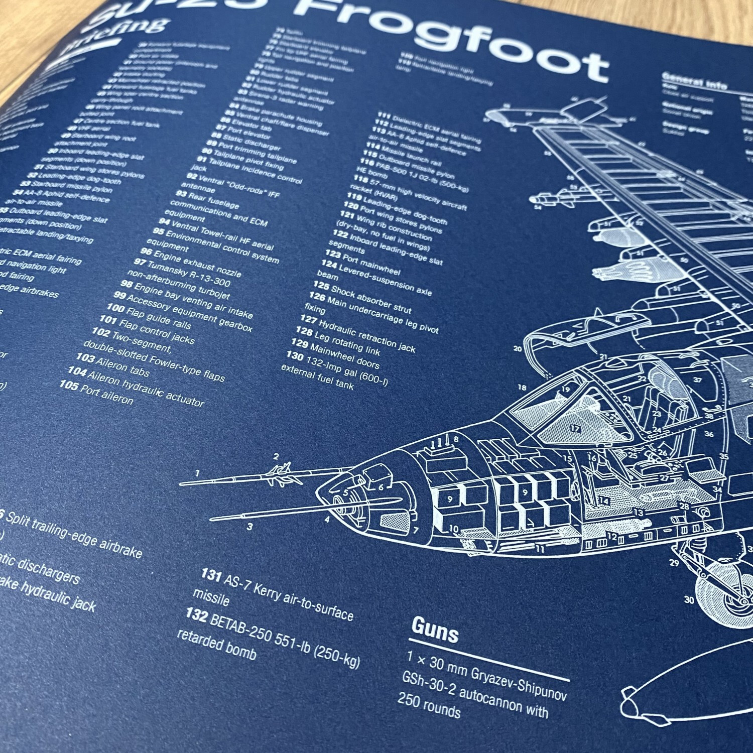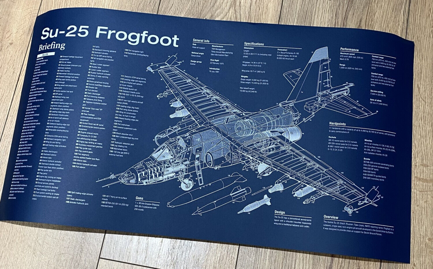 poster with a drawing of the Su-25 FrogFoot aircraft, the dark blue