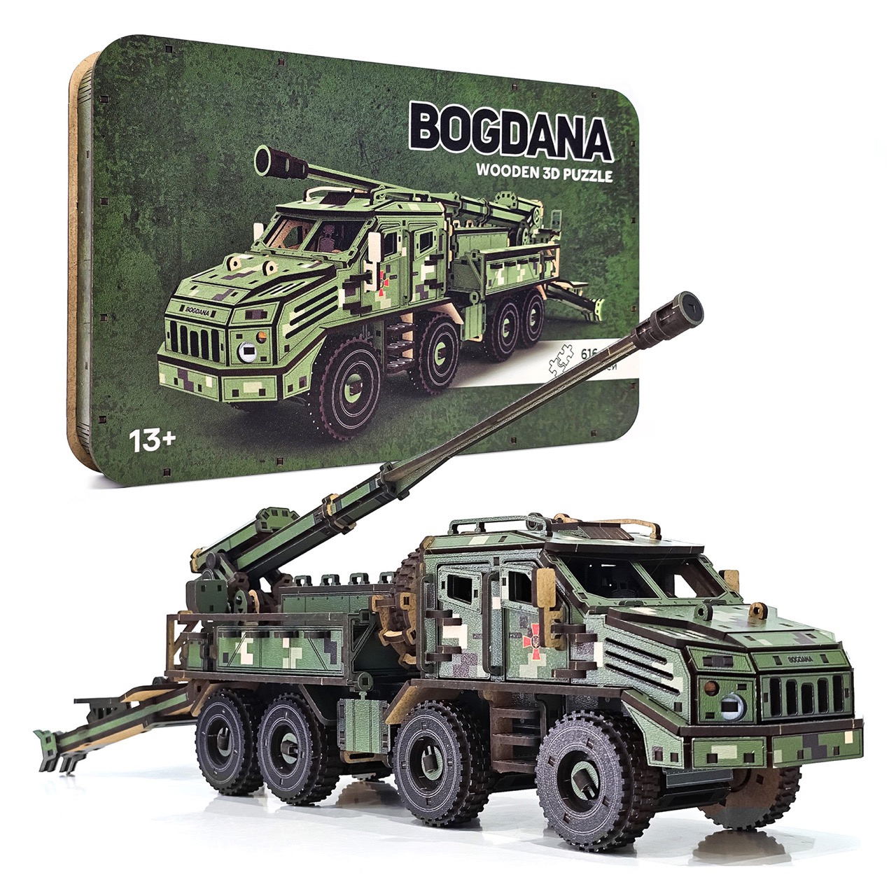 - Discover the exciting world of the BOGDANA 2.0 self-propelled artillery mount with a wooden construction set.