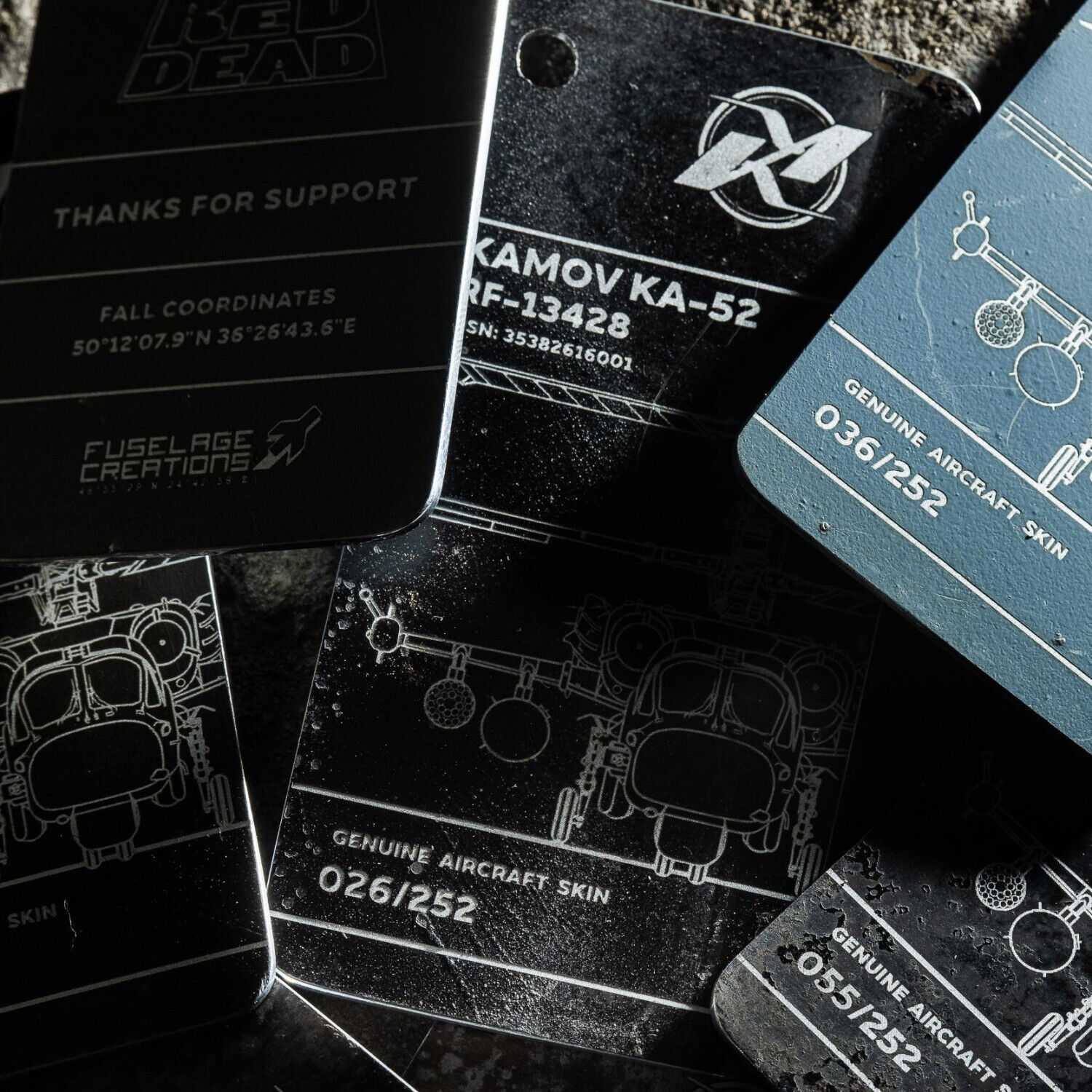 Tag Keychains Made from Parts of Alligator KA-52 Attack Helicopter Tribute