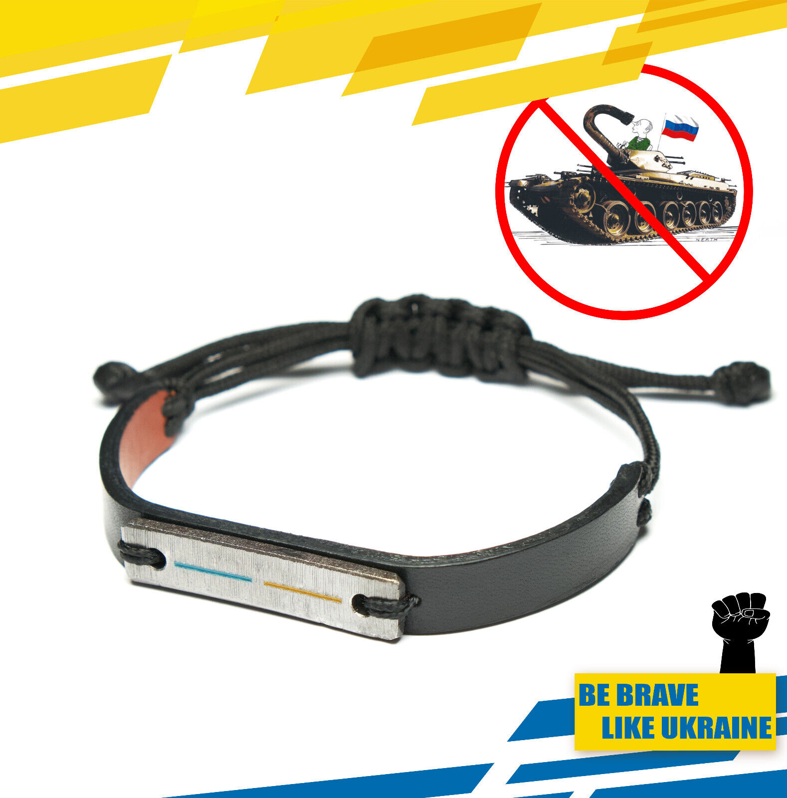 This Paracord leather Ukrainian bracelet is made of russian tank destroyed between Bucha and Irpin in March 2022. Minimalist design military custom jewelry bracelet made of steel inspired by Azovstal original bracelet that sold all around the world more than 100.000 pcs. The most operations is handmade and can be personalized as you wish.