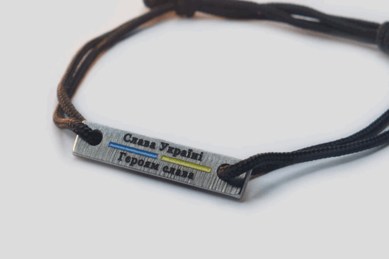 Introducing our stunning paracord bracelet in a sophisticated black color combination of the Ukrainian flag. This unique piece of jewelry is handcrafted using high quality paracord rope with a piece of a real Russian tank destroyed in Ukraine, near Bucha. As a proud Ukrainian seller, we dedicate this bracelet to all those who proudly say Glory to Ukraine. A minimalist designer jewelry bracelet made of steel, inspired by the original Azovstal bracelet, which has sold over 100,000 pieces worldwide.