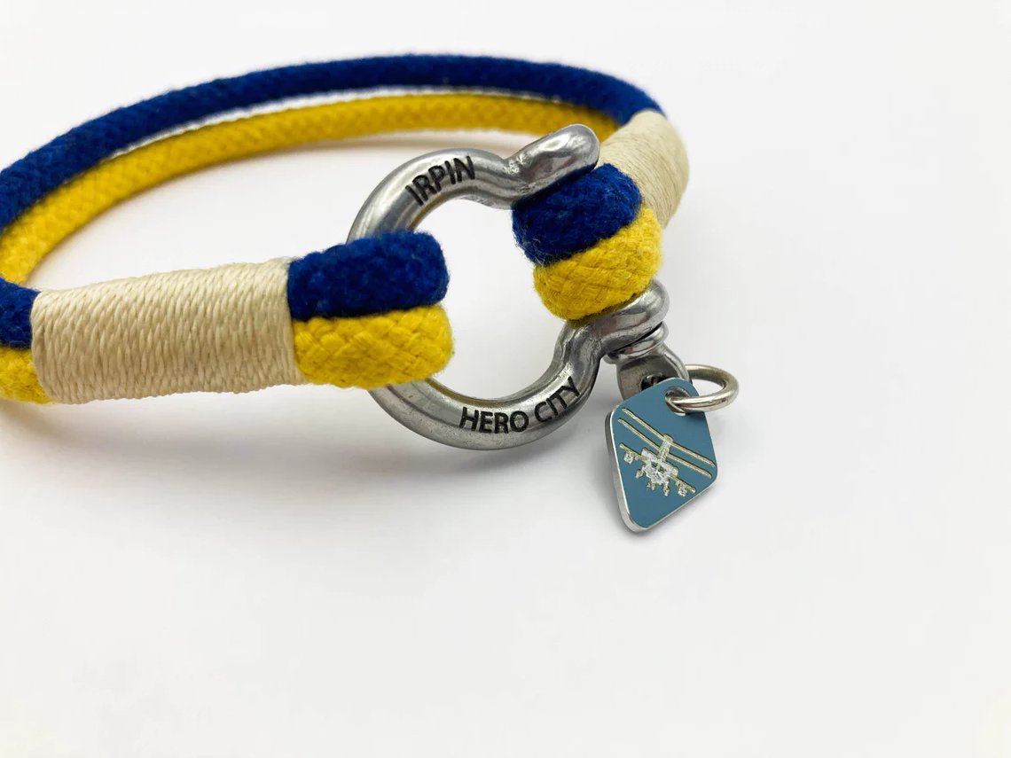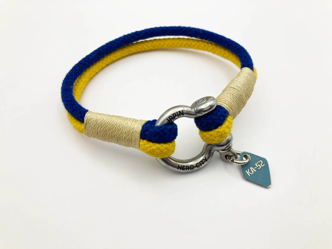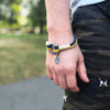 Introducing our exclusive collection of handmade military-style accessories, including a handmade rope bracelet with a piece of downed KA-52 Alligator plating. These exceptional pieces of jewelry are created from recycled materials from the Ukrainian war era, combining a unique blend of cotton, navy paracord and aircraft plating. Each piece proudly carries the legacy of the brave Ukrainians, along with this repurposed authentic piece of the main combat helicopter – the Russian KA-52.