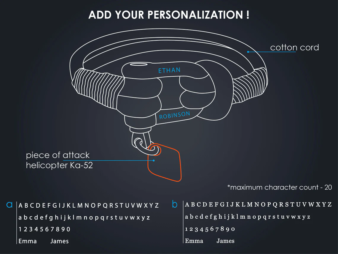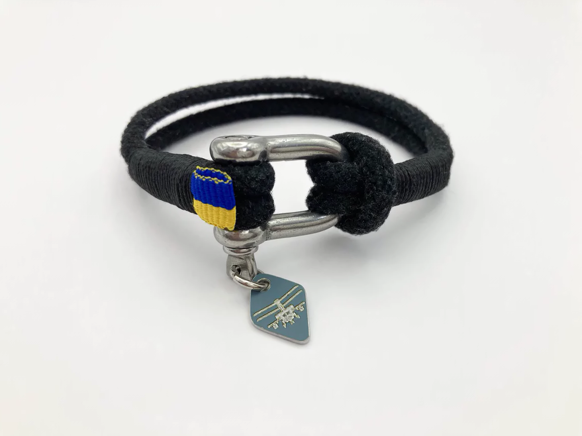 Introducing our exclusive collection of handmade military-style accessories, including a handmade rope bracelet with a piece of downed KA-52 Alligator plating. These exceptional pieces of jewelry are created from recycled materials from the Ukrainian war era, combining a unique blend of cotton, navy paracord and aircraft plating. Each piece proudly carries the legacy of the brave Ukrainians, along with this repurposed authentic piece of the main combat helicopter – the Russian KA-52.